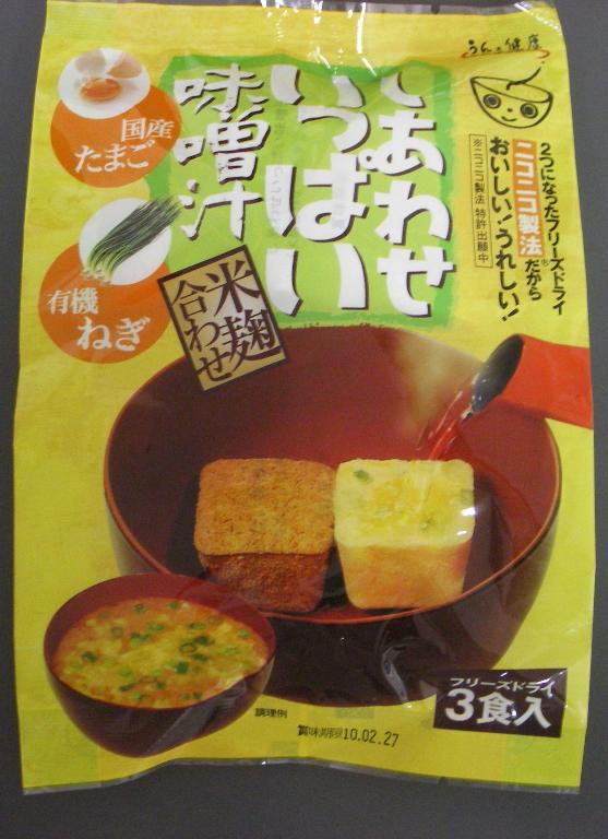 【送料無料】しあわせいっぱい味噌汁 米麹合わせ(国産たまご・有機ねぎ) 3食入×10袋<賞味期限2011年9月29日>【smtb-k】【w2】 ◆メーカー◆ 株式会社コスモス食品◆特 徴◆ コクのある米麹合わせ味噌にマッチする厳選素材は、ハリと弾力のある「国産たまご」と自社農場で育てる「有機ねぎ」。新鮮たまごだからこそのふんわり食感、色鮮やかな有機ねぎの風味が口の中いっぱいに広がります。 ◆ニコニコ製法◆特許出願中「ニコニコ製法」は、お味噌 (更新日時:2011/01/28 00:23) Supported by 楽天ウェブサービス |