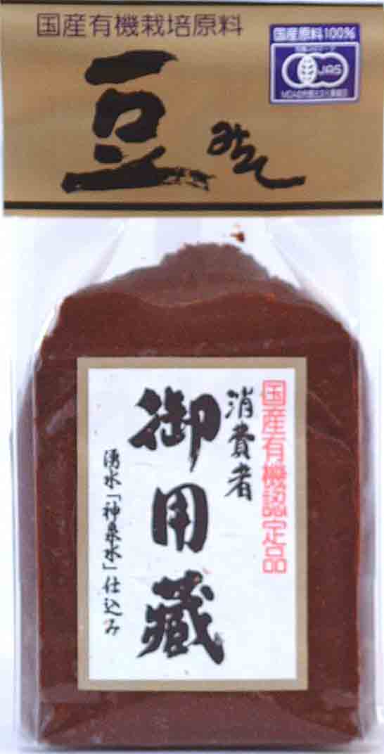 有機家特選有機JAS(無農薬・無添加)天然生味噌 御用蔵 「豆みそ」 500g 国産有機大豆使用 原材料は全て国産の有機JAS大豆を100%使用しています。豆味噌豆味噌といえば名古屋ですが通の方の味噌といえましょう。色は真っ黒で抗酸化効力があるとNHKで説明していました。このままではやや渋みがありなじめないのですが玄米・麦味噌が最後にさっと溶かし火を止めるのに対しこの味噌は逆に煮込む方が蛋白質の (更新日時:2011/01/28 00:22) Supported by 楽天ウェブサービス |